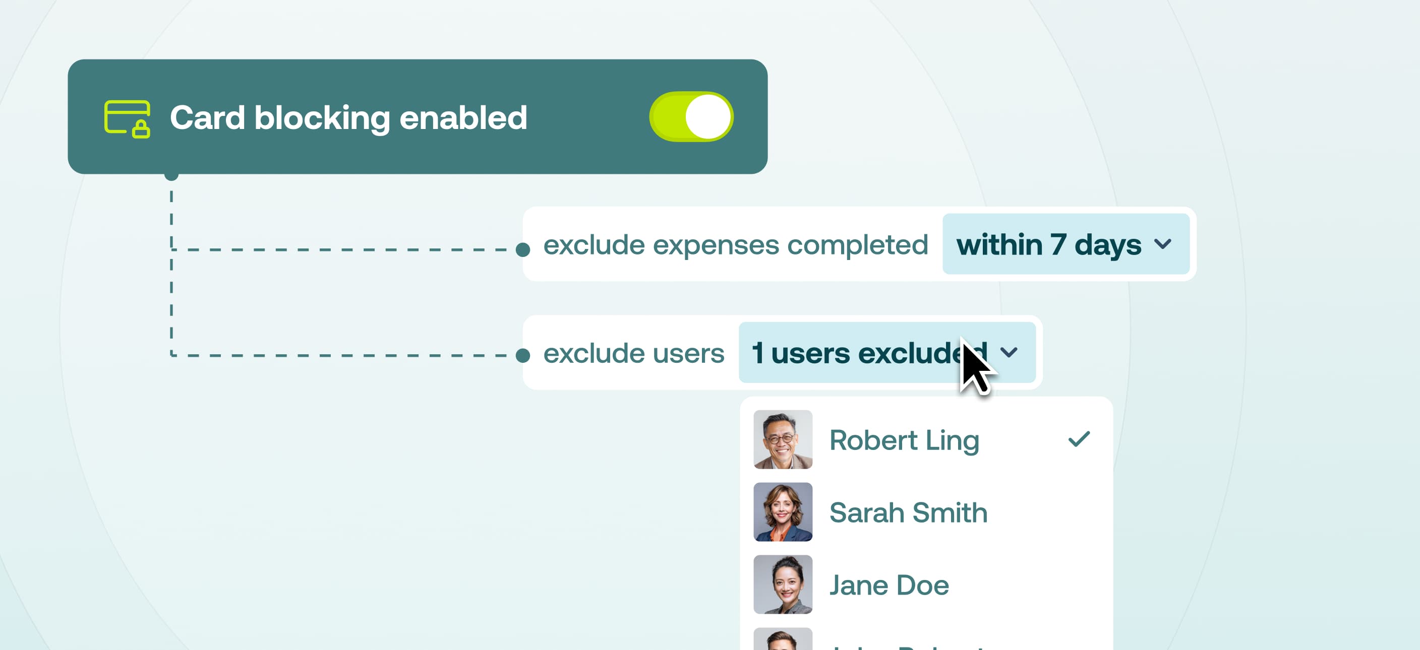 Finance teams can now exclude specific users from having their cards blocked when they have incomplete expenses with our card blocking feature. This means that card blocking can be enabled for the majority of your staff, but people like company executives can be safely excluded.