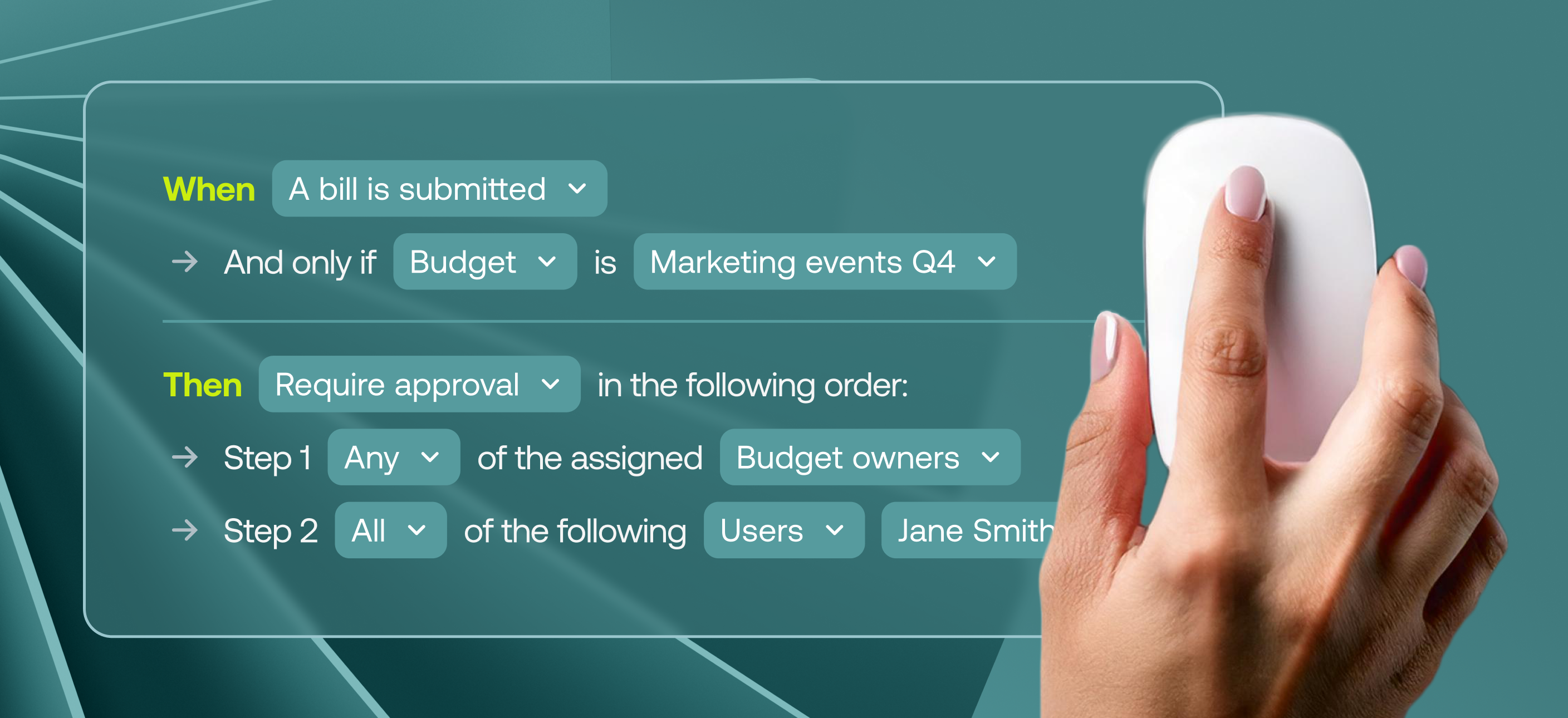 Learn moreBuild your approval policy directly into Weel so that any card payment, bill, reimbursement or top-up is routed for approval to the right people, at the right time. With Weel’s approval policy builder you can say goodbye to long email chains, extra approval software, and reviewing expense report print-outs.
