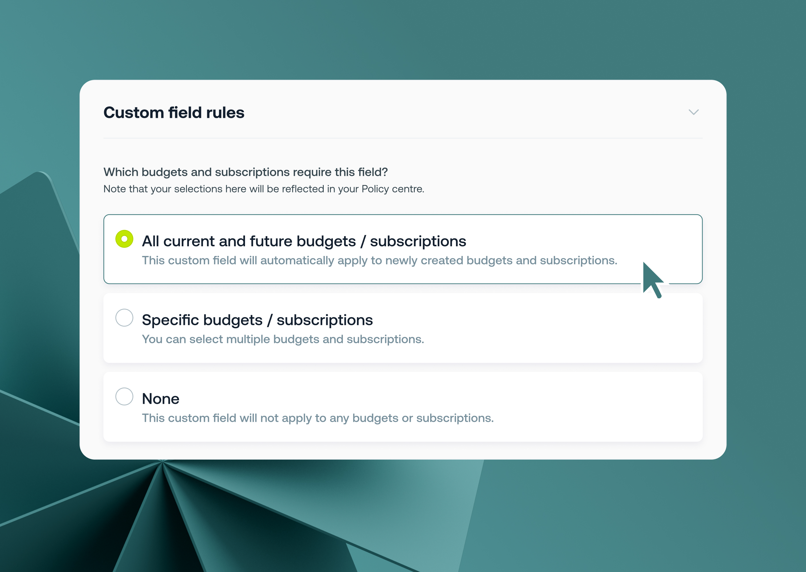 Learn moreYou can now configure a Custom Field to automatically apply to all current and future budgets and subscriptions, eliminating extra steps and reducing the risk of missing crucial data in your workflows.