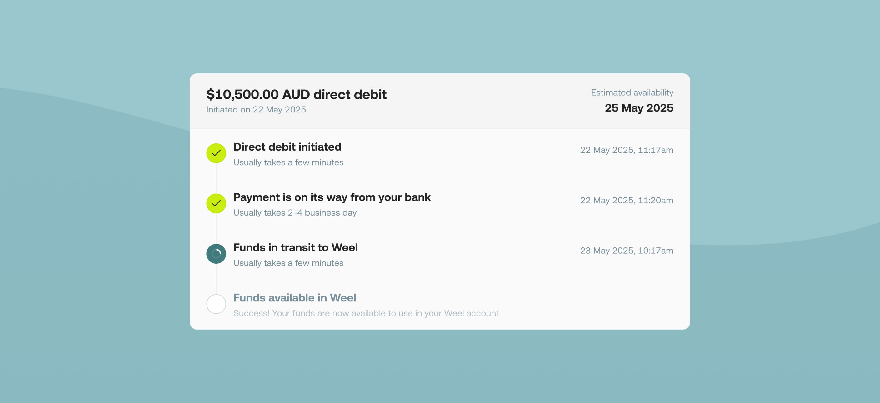 We’ve made it easier to manage your account top-ups with a refreshed direct debit experience. This includes a simpler, real-time visibility into direct debit progress, and a complete history of all past direct debits.
